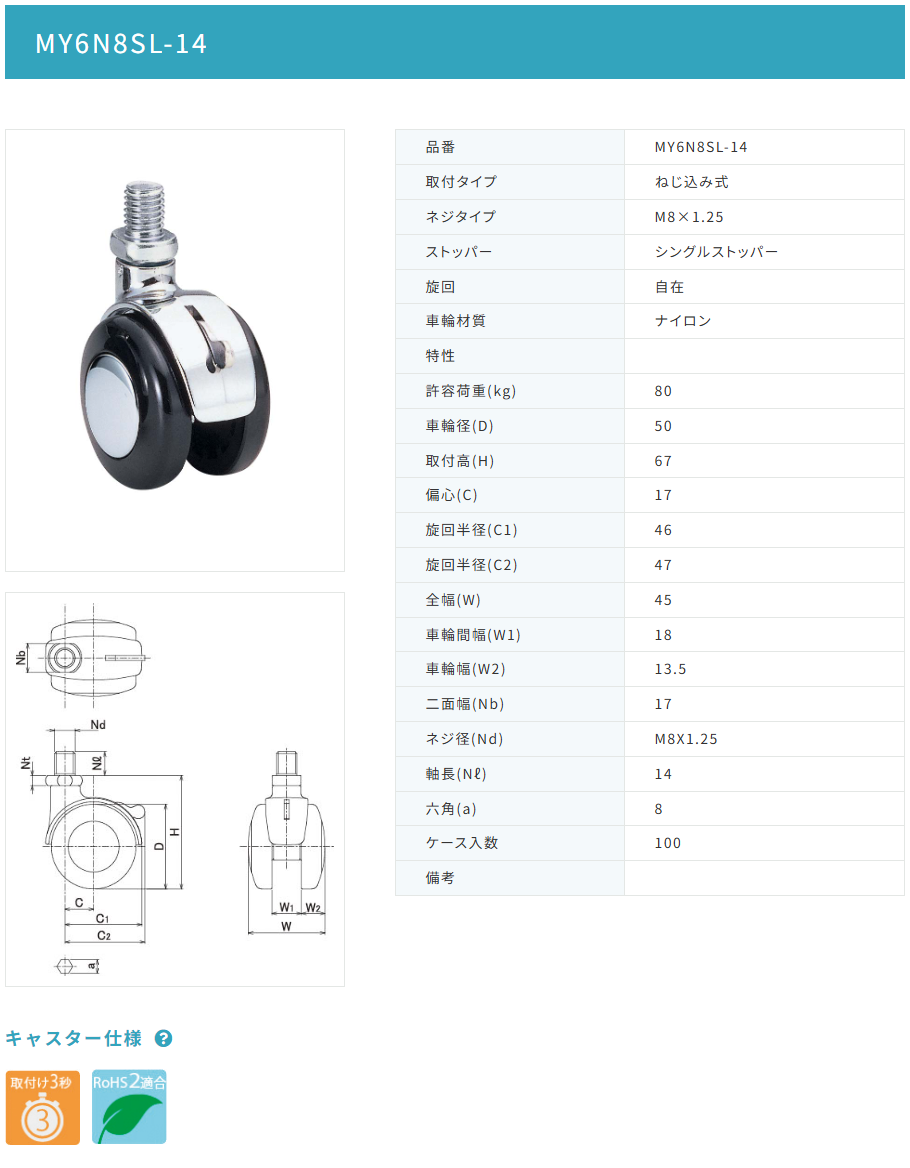 メーカーサイト https://www.tokai-caster.co.jp/