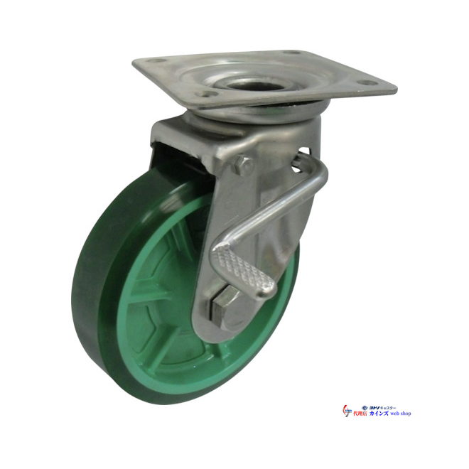 ヨドノ 樹脂製ウレタンゴム車輪ステンレス製自在車ストッパー付 ベアリング無 75